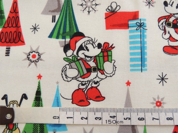 【ミッキー&ミニー】ヴィンテージサンタ柄・クリスマス・コットン・生地/ファブリック/リメイク