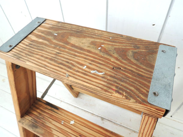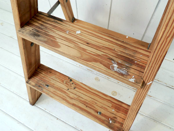 【KELLER LADDERS】白いペンキの付いた木製・ヴィンテージ・ステップラダー/脚立