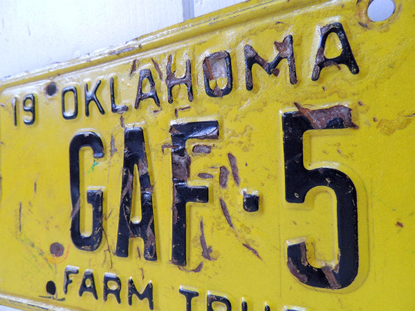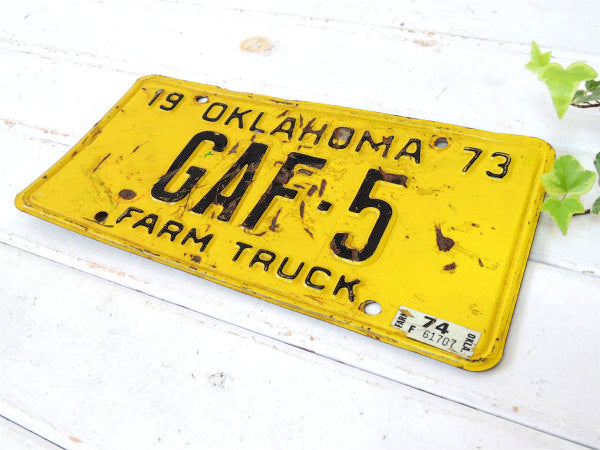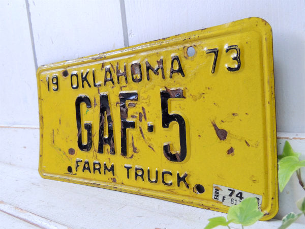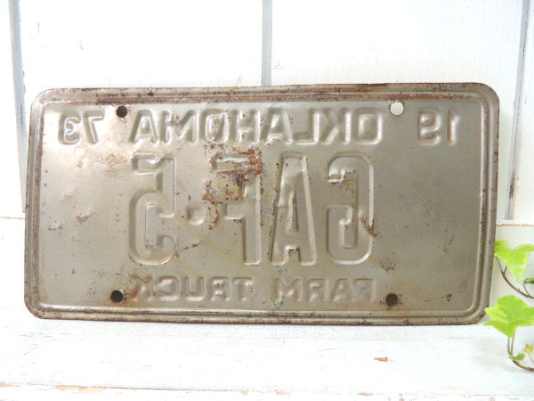1973年!アメリカ・オクラホマ州のトラックナンバー"19 OKLAHOMA 73/GAF-5/FARM TRUCK"(農場・農園)ヴィンテージ・ナンバープレート(サイン)です。