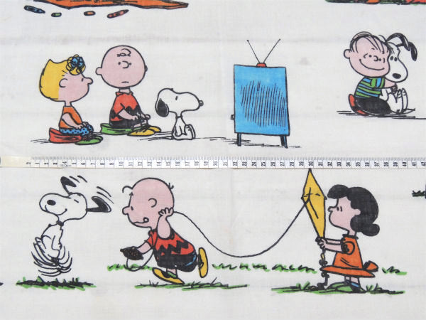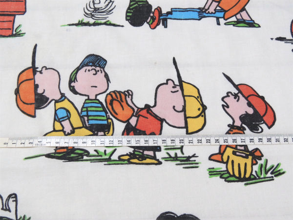 スヌーピーやチャーリーブラウン・ライナス・ルーシーなどピーナッツの仲間が、ベースボールやカイト・ボール遊び・読書・テレビを見たりしている、とっても可愛い総柄プリントです。