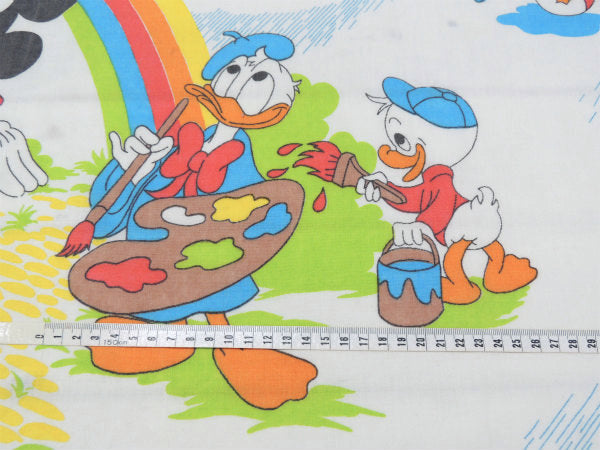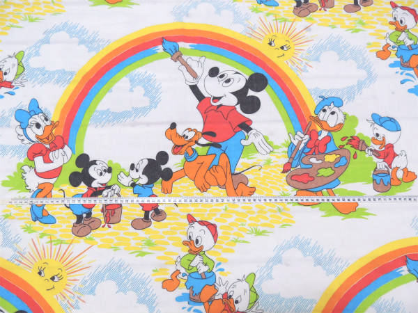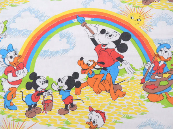 【ミッキー&フレンズ】ディズニー・レインボー柄・フラットタイプ・ヴィンテージ・ユーズドシーツ USA