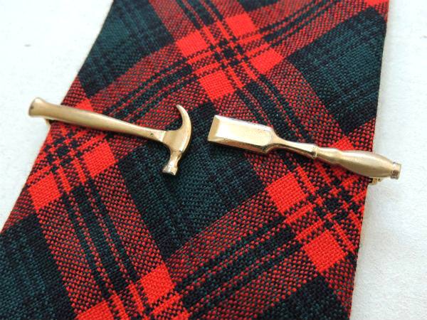 アメリカで見つけました・・開閉式・アンティーク''ハンマー&のみ''大工道具モチーフ入り お洒落なデザインのタイピン(タイバー)です。