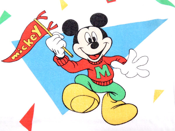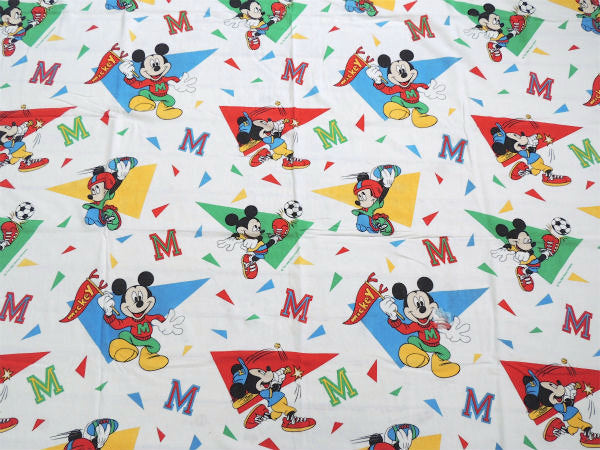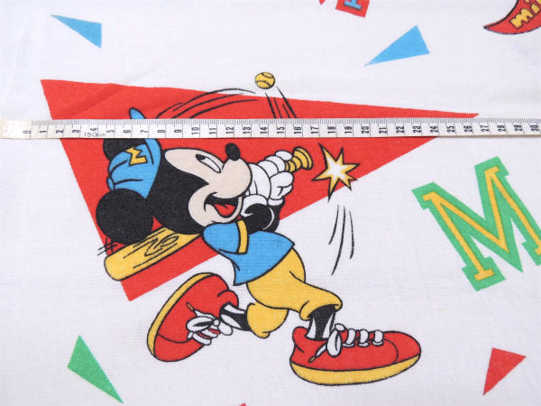 【ミッキーマウス】ペナント&スポーツ柄・コットン100%・ヴィンテージ・USEDボックスシーツ