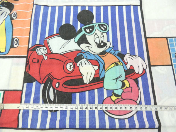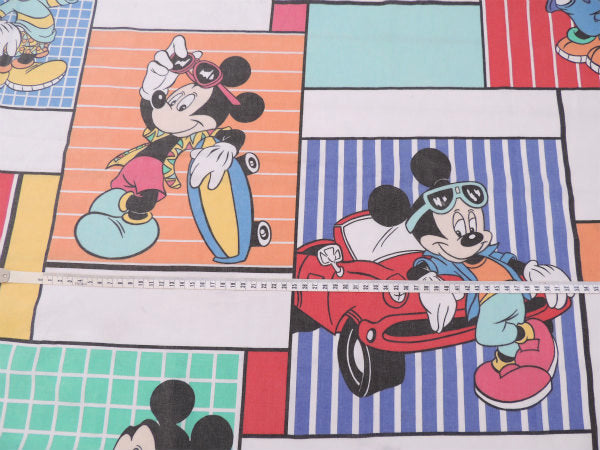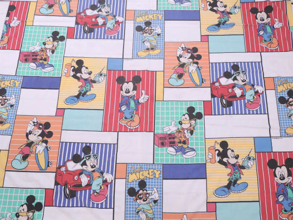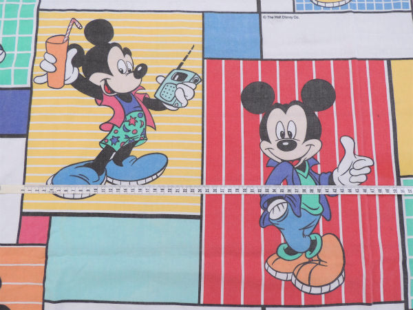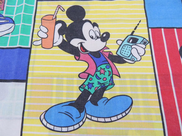 【ミッキーマウス】カラフルなクールミッキー柄・ヴィンテージ・USEDフラットシーツ(1/2) USA