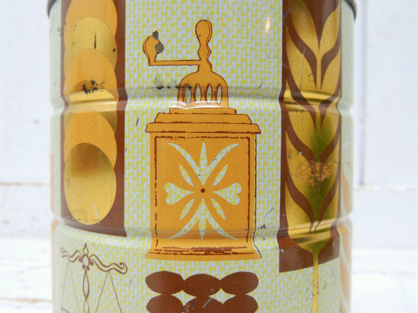 【Ehlers COFFEE】コーヒーミル&リーフ柄・ティン製・ヴィンテージ・コーヒー缶/ティン缶