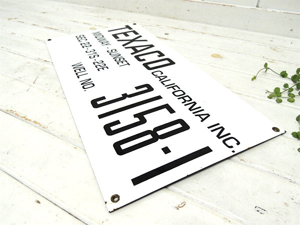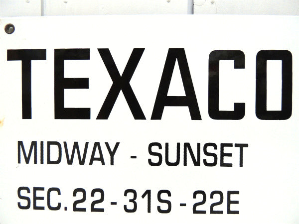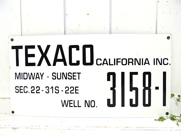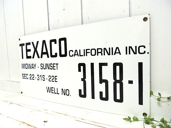 ホワイト×ブラックのツートン【TEXACO/CALIFORNIA INC./MIDWAY-SUNSET SEC.22-31S-22E/WELL NO. 3158-1】と英数字が入っております。