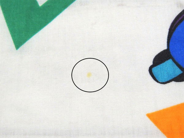 プリントの発色良く生地もしっかりしておりますが、1箇所に小さなヨゴレが見られます(画像参照)。