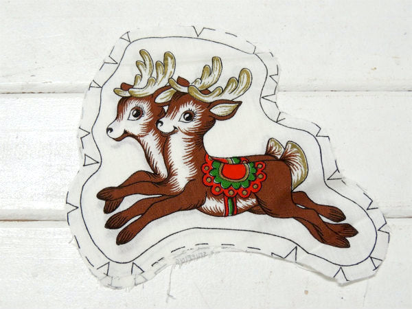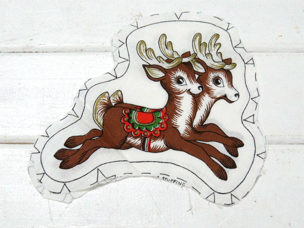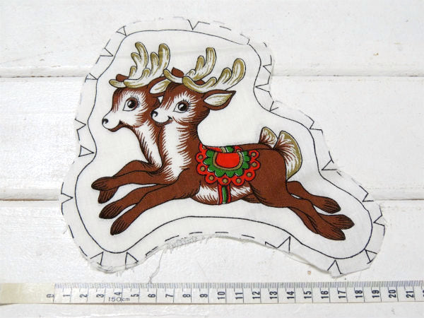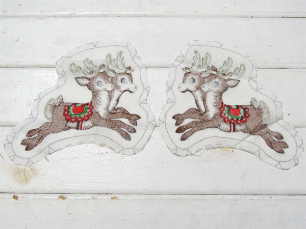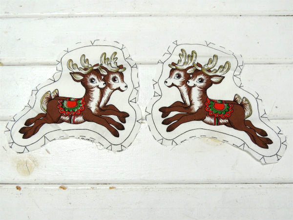 クリスマス 2匹 トナカイ柄 ピロードール デッドストック ヴィンテージ ファブリック 生地 ②