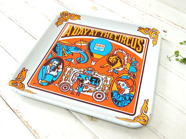 アメリカ西海岸 カリフォルニア州でみつけました・・1970's『A DAY AT THE CIRCUS(サーカスの1日)』銀行・アドバタイジング・ブリキ製・ヴィンテージ・トレイ(盆・プレート)です。
