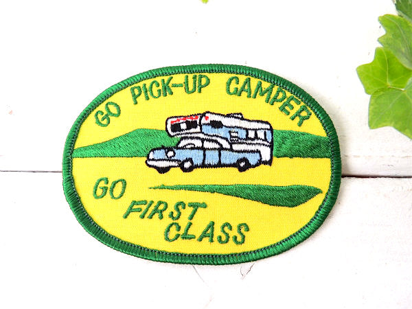 アメリカ西海岸・カリフォルニアで見つけました・・1960's・1970's~”GO PICK-UP CAMPER /GO FIRST CLASS”キャンピングカーデザイン・ヴィンテージ・刺繍ワッペン・デッドストックです。