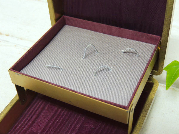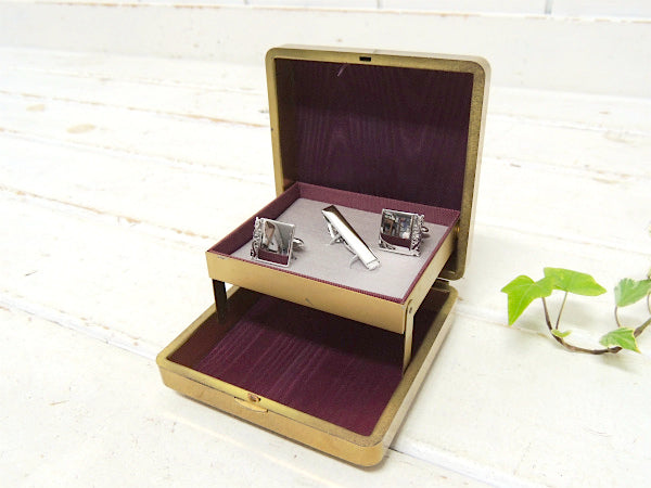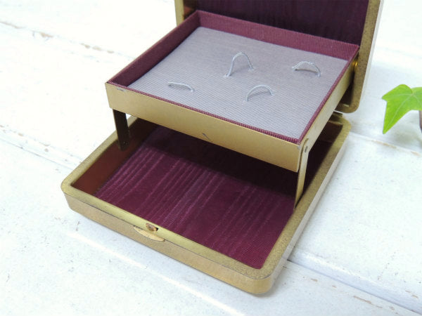 【1950y~ゴールド色】2段式・ヴィンテージ・タイピン&カフスケース/ジュエリーケース/宝石箱