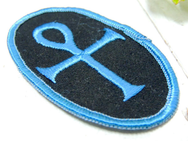 カリフォルニアで見つけました・・”青い十字架”クロス柄・ヴィンテージ・刺繍ワッペンです。 エジプト十字架とも呼ばれる古代エジプトの象徴図像『アンク』のモチーフ デッドストック・未使用 ワッペンとしてはもちろん!コスプレ衣装&リメイクお持ちのジャケットデニム革&鞄などに取り付けてファッションアイテム(アメカジ・バイカー)&アクセサリーパーツ♪ 多少のスリキズ等ございます。 画像(写真)でのご判断を宜しくお願い致します。 ■size: 約 W4.6cm×H9.1cm      ■コンディション : ★★★★☆(デッドストック・未使用) ■レターパックライト¥360対応可(追跡サービスあり・補償なし) ※ご注文の際、お手数ですがメッセージ欄に『レターパックライト希望』とご記入下さい。新たにお見積もりをメールにてお知らせさせていただきます。