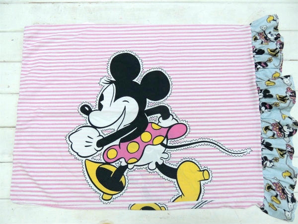 ミニーマウス 可愛いフリル付き・ヴィンテージ・ピロケース 枕カバー USA