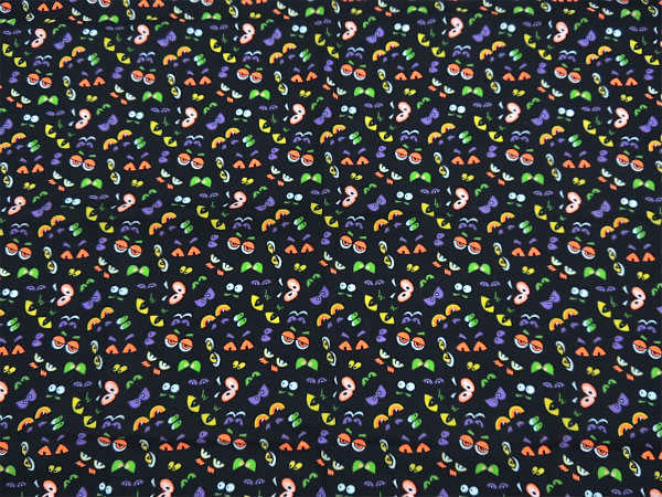 ブラックベースに、色々なカラフル目玉柄のプリントです。