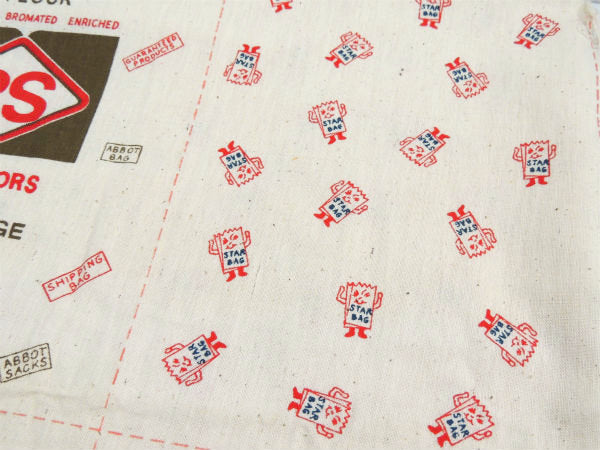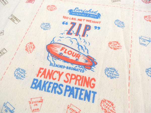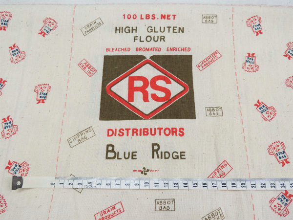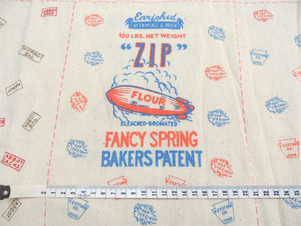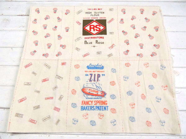 【High Gluten Flour, RS Distributors, Blue Ridge】が1パネル、【“Zip” Flour Fancy Spring Bakers Patent】が1パネル、袋の背面になるパネルが4枚、合計6パネルの未カット点線入りファブリックです。
