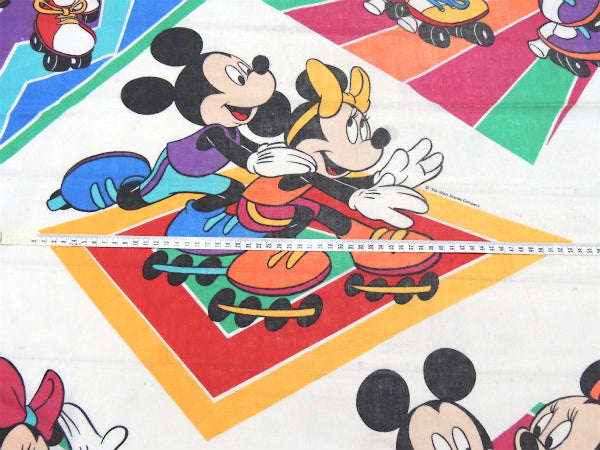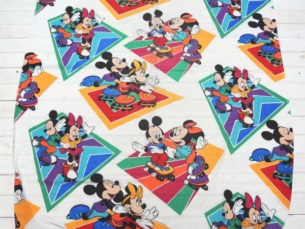 【ミッキーマウス&ミニーマウス】ローラースケート柄・ヴィンテージ・ユーズドシーツ(フラットタイプ)