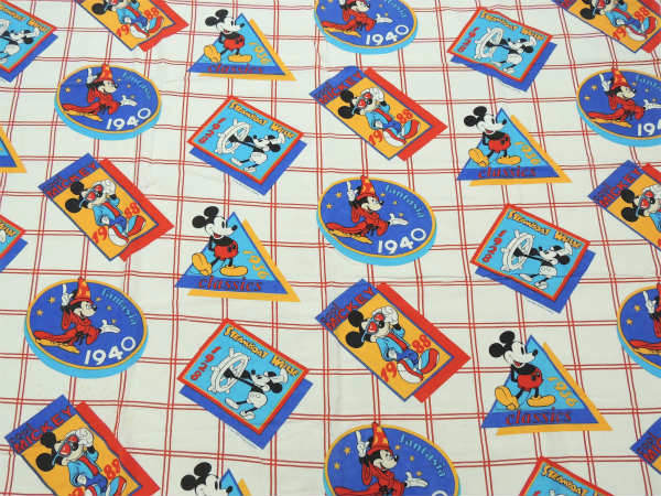 【ミッキーマウス】蒸気船ウィリー&ファンタジア・ヴィンテージ・USEDフハーフシーツ(上半分)