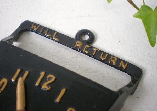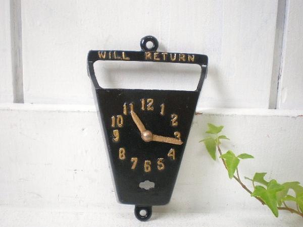 【WILL RETURN】アイアン製・小さな・アンティーク・クロックサイン・USA・看板