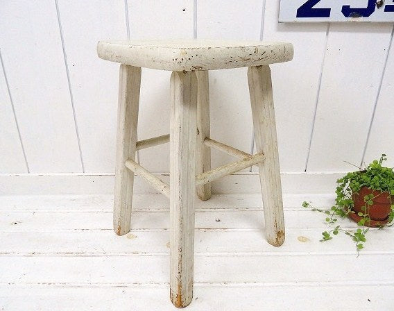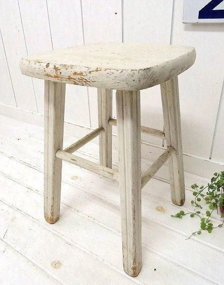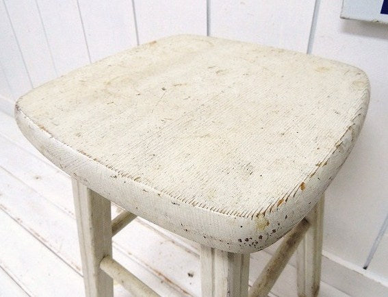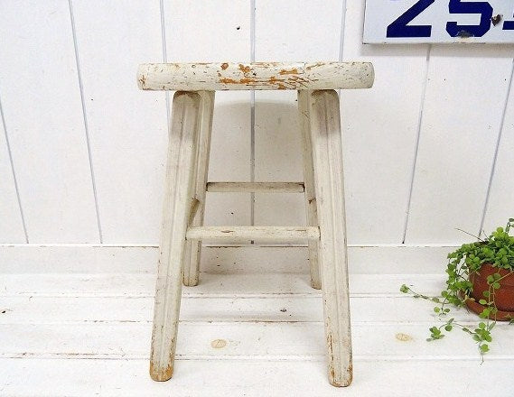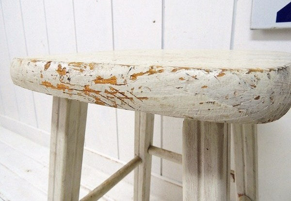 アメリカ西海岸で見つけました・・白色の木製・アンティーク・スツールです。