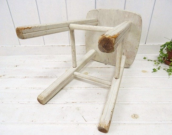 【USA・白色】シャビーな木製イス・アンティーク・スツール・チェア・椅子