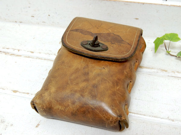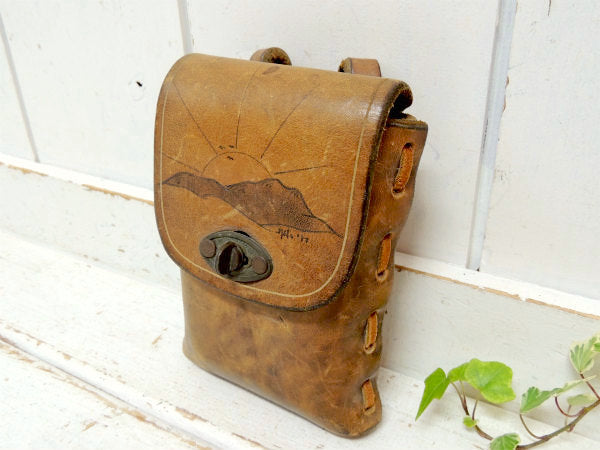 【サンライズ柄・革・70's】ヴィンテージ・ベルトポーチ・ウエストポーチ・バッグ・バイカー