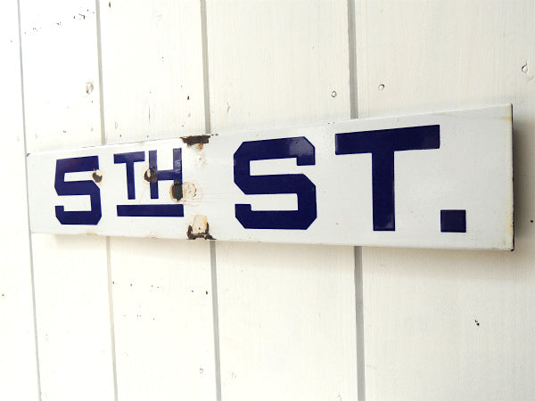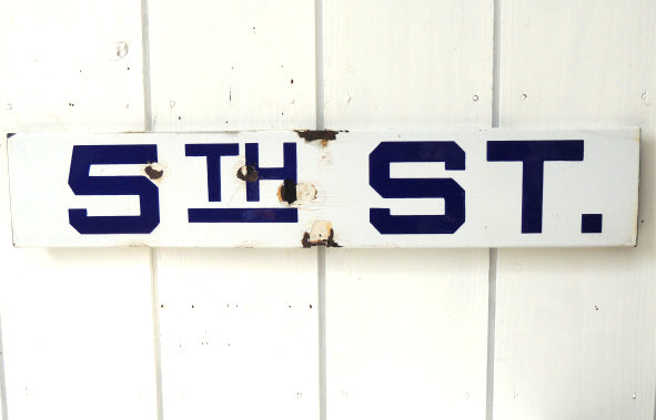 アメリカで実際に使われていた、【5TH STREET】通りを表すサインで、ホーローの温かみのあるお品です。