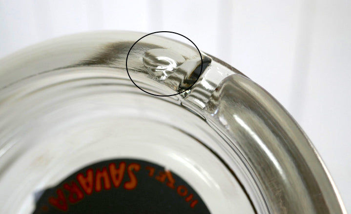 スモーキーガラス製で、中央に【HOTEL SAHARA LAS VEGAS】ポップなロゴと文字が入っております。