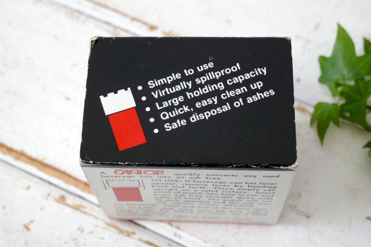 使用済みの飲料アルミ缶の上に灰皿をセットし、灰皿を下に押すと缶のフタ部分に灰皿が固定され、タバコの灰や吸い殻を缶に収めることができる、ユニークなお品です。