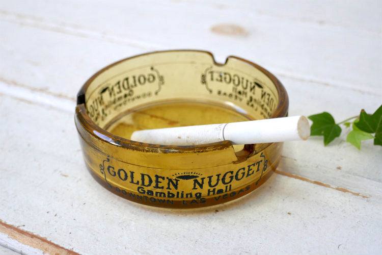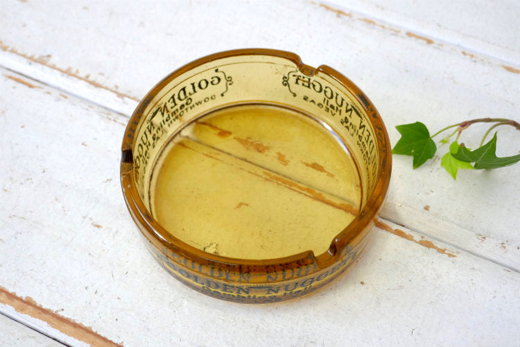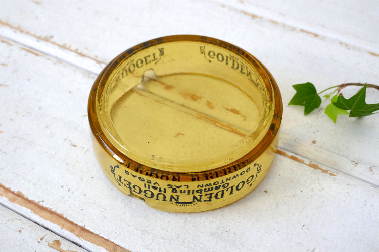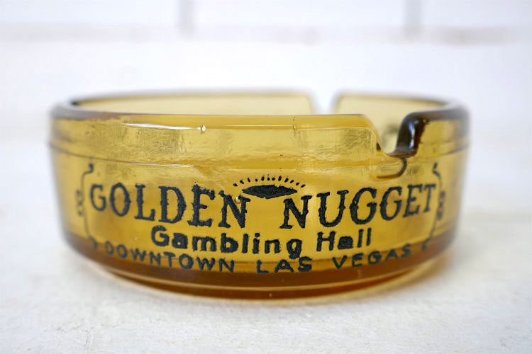 ラスベガス老舗 アンバーガラス カジノ ゴールデンナゲット 灰皿 GOLDEN NUGGET ヴィンテージ アドバタイジング USA
