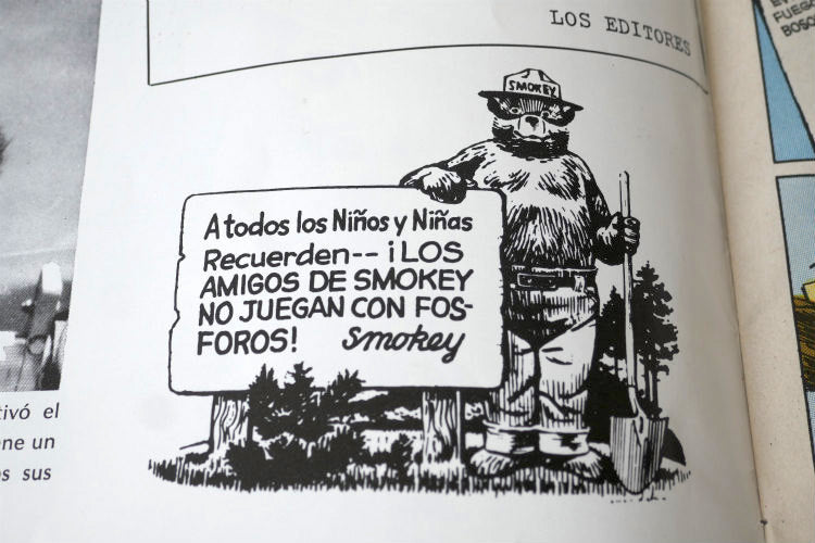 アメリカ西海岸・カリフォルニア州 ロサンゼルス マンハッタンで見つけてきました・・『スモーキーベア』の【La Verdadera Historia de SMOKEY BEAR】ヴィンテージ・コミックです。
