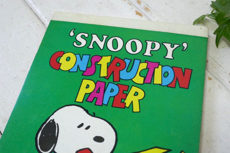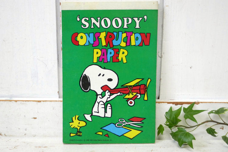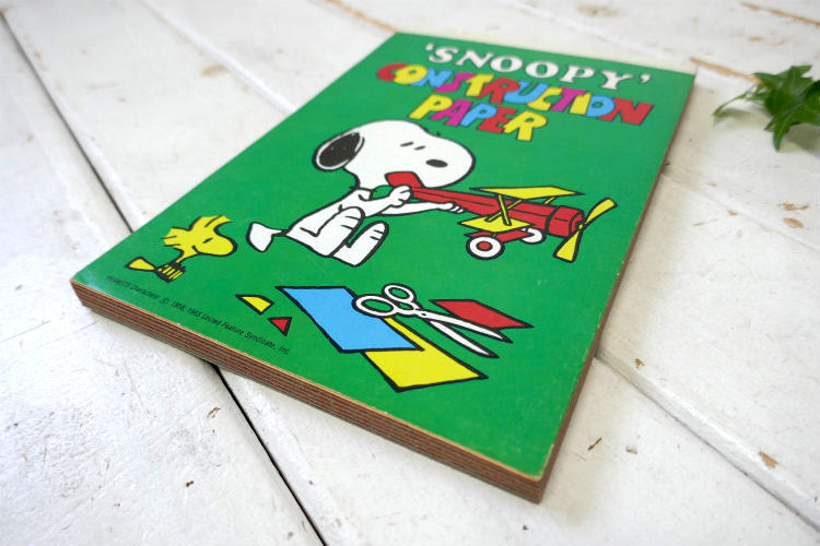 グリーンの表紙に【″SNOOPY″ CONSTRUCTION PAPER】のカラフルな文字、スヌーピーとウッドストックが画用紙で飛行機を工作している、可愛いイラストのパッケージです。