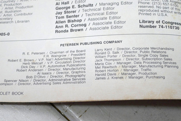 アメリカ西海岸・カリフォルニア州 ロサンゼルスでみつけました・・PETERSEN'S THE COMPLETE CHEVROLET BOOK 3rd EDITION ヴィンテージ雑誌です。