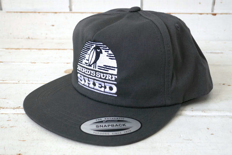 BIRD'S SURF SHED バードサーフシェッド カリフォルニア サンディエゴ サーフショップ ストーン×ホワイト 刺繍 フレックスフィット キャップ 芯なし ステッカー付き