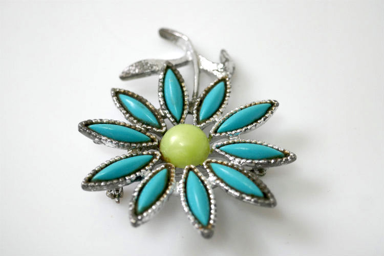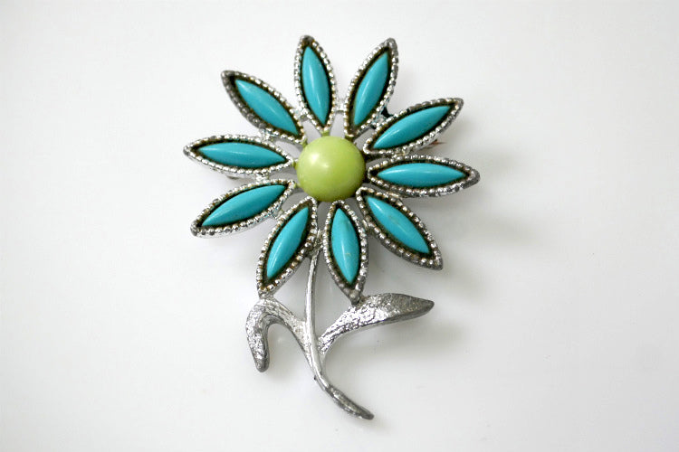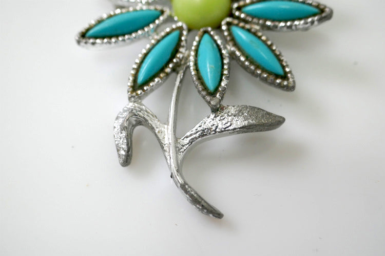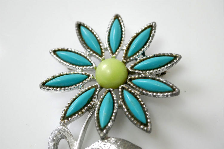 サラ コンベントリー Sarah Coventry デイジータイム フラワー ターコイズ 70's ヴィンテージ ブローチ アクセサリー コスチュームジュエリー USA