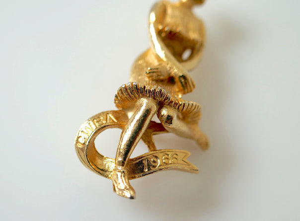 アメリカ西海岸・カリフォルニア州・ロサンゼルス郊外で見つけました・・『CWBA(カリフォルニア州女子 ボウリング協会)』ゴールドトーン・メタル製・ヴィンテージ・ブローチです。