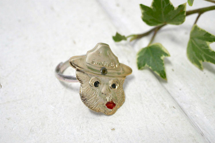 スモーキーベア Smokey Bear 森林火災防止 キャラクター 70's ヴィンテージ リング 指輪