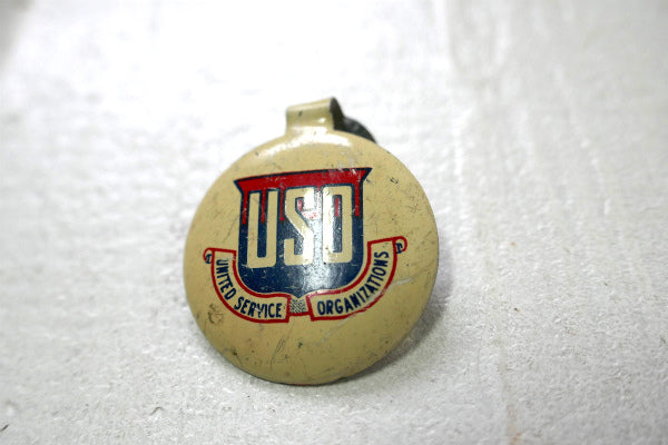 1941's USO 米国軍隊 ヴィンテージ ミリタリー USA 缶バッジ 第二次世界大戦 アメリカ軍