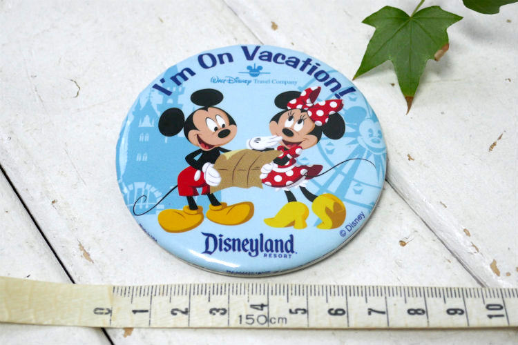 I'M ON VACATION Disneyland ディズニーランド ミッキーマウス&ミニーマウス ヴィンテージ・缶バッジ・アドバタイジング アメリカ ロサンゼルス