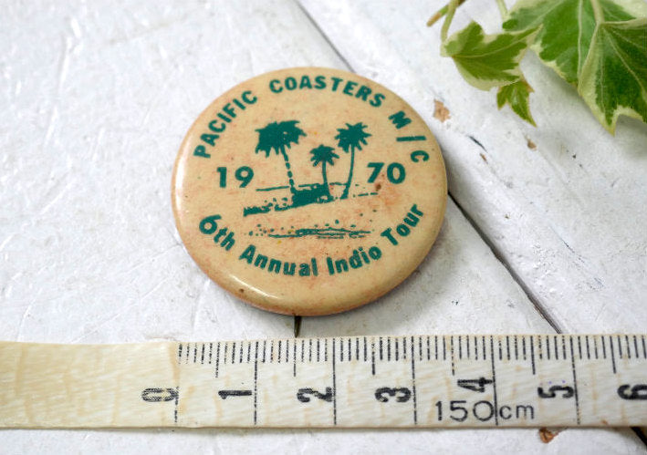 1970 Pacific Coasters Motorcycle Club 6th Annual Indio Tour モーターサイクル バイク ツアー ヴィンテージ 缶バッジ USA