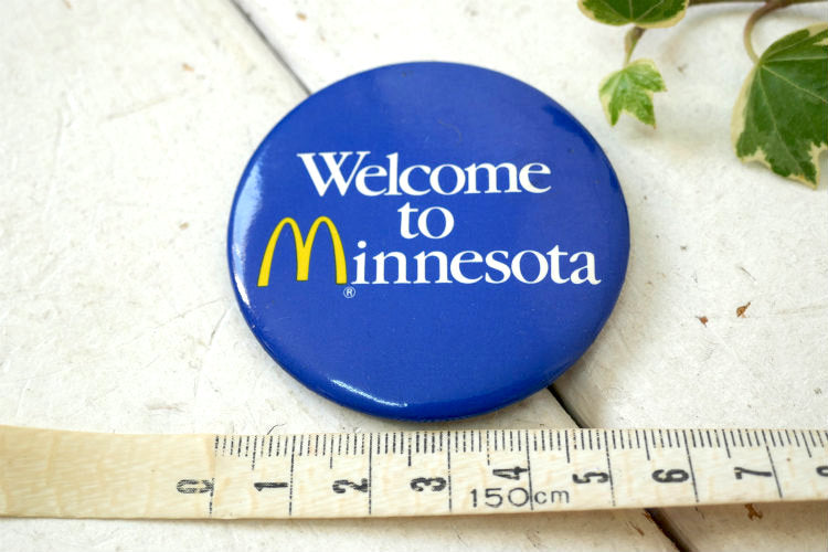 アメリカ西海岸・カリフォルニア ロサンゼルスで見つけました・・世界的に展開するファストフードチェーン『マクドナルド(McDonald's)』Welcome to Minnesota ヴィンテージ・缶バッジです。