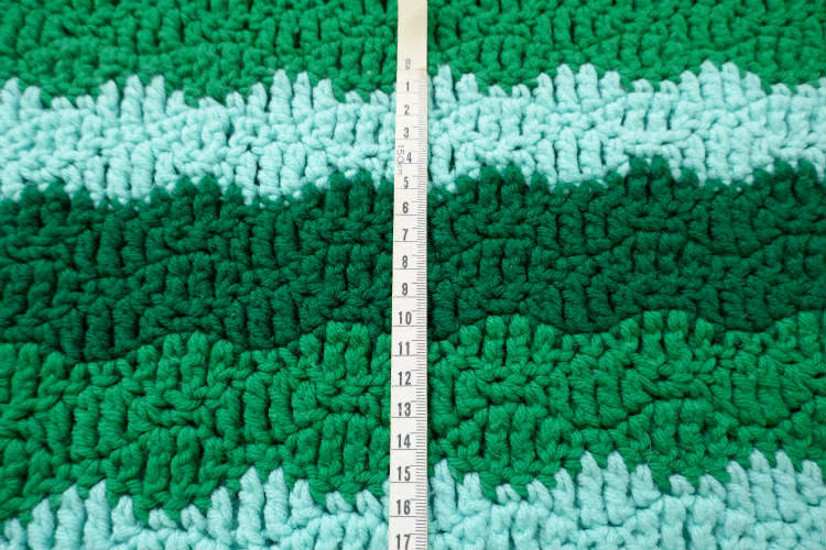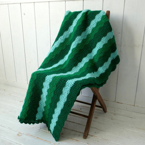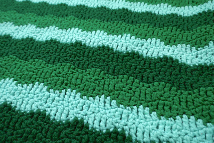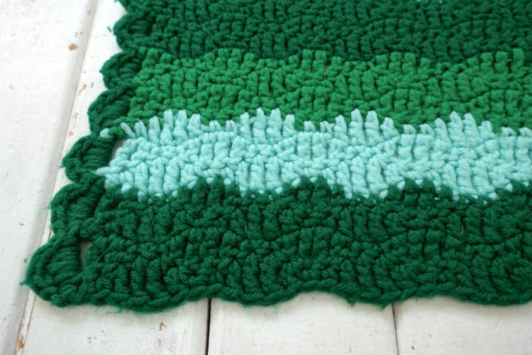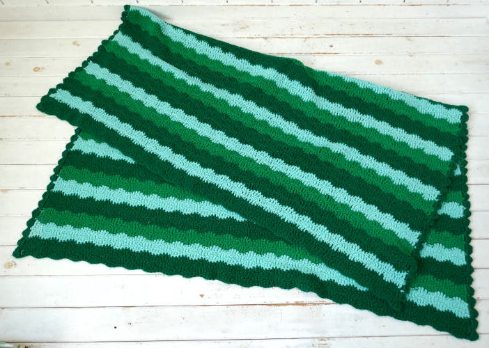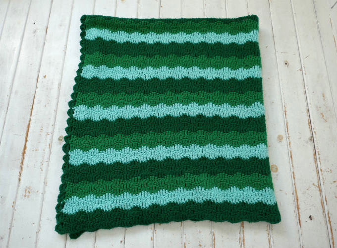 レトロ グリーン ボーダー 手編みニット フリル ヴィンテージ ブランケット ひざ掛け ハンドメイド 大判 USA