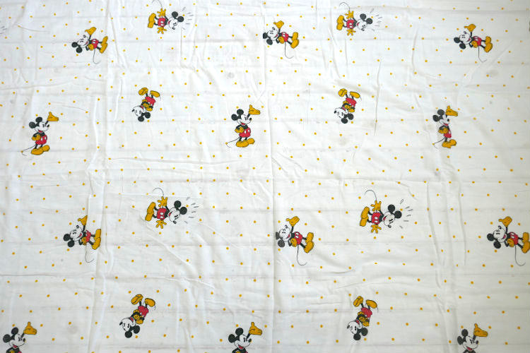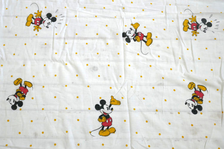 アメリカ西海岸・カリフォルニア州・サンフランシスコで見つけました・・ウォルトディズニーの『ミッキーマウス』水玉柄・ヴィンテージ・USEDフラットシーツです。