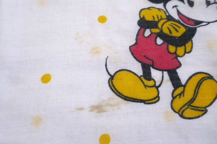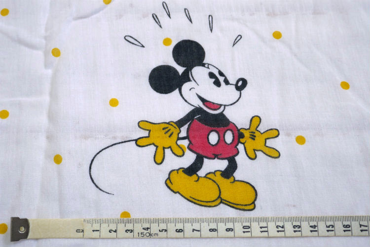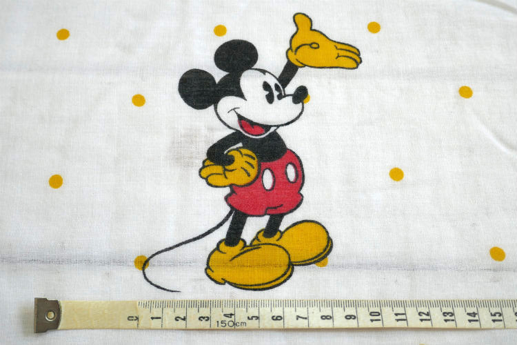 ミッキーマウス ディズニー イエロー 水玉 ヴィンテージ ユーズドシーツ ボックスシーツ