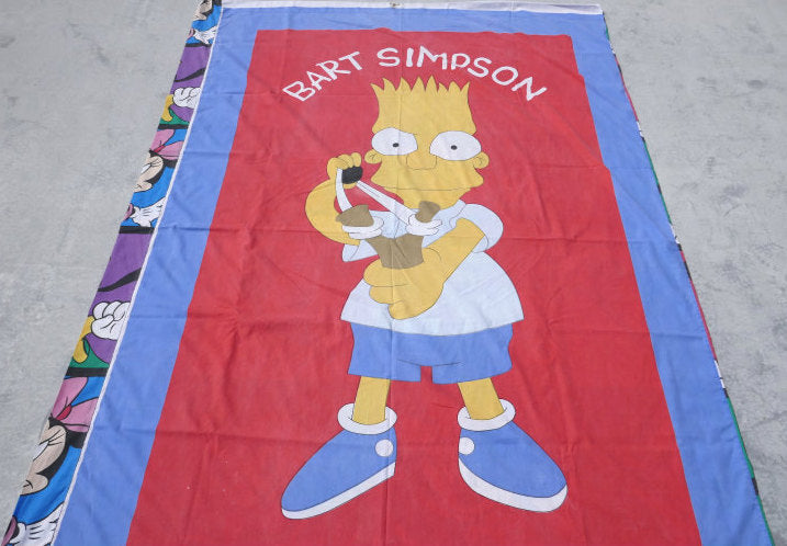 シンプソンズ×ミッキー&フレンズ 2パターン フラットシーツ2枚製 ヴィンテージ 布団カバー リメイク USA