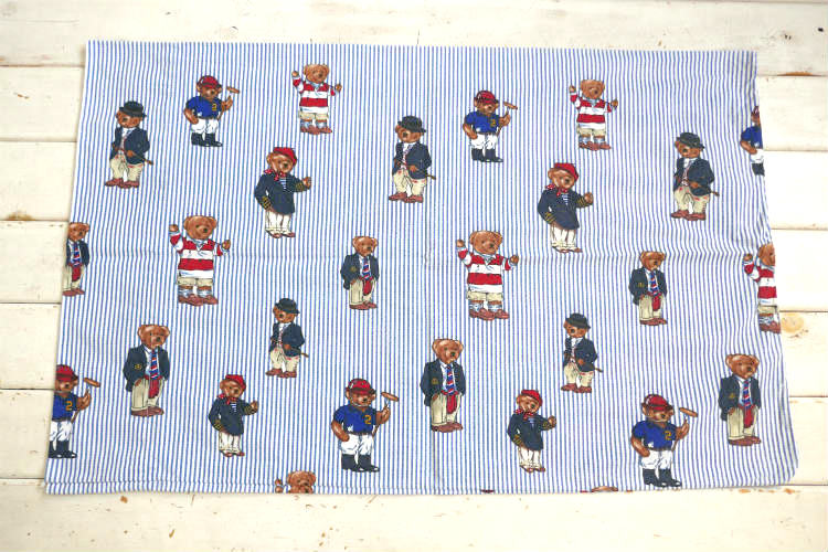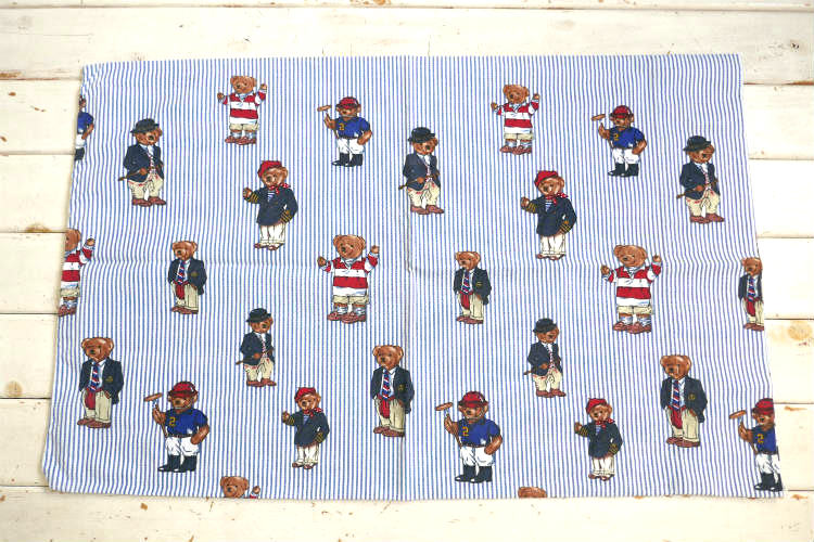 アメリカ西海岸・カリフォルニア州・ロサンゼルス郊外で見つけました・・世界的な人気ブランド『Ralph Lauren(ラルフ・ローレン)』の“ポロベア″・ストライプ柄・USEDピローケース(枕カバー)です。