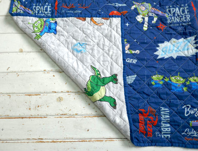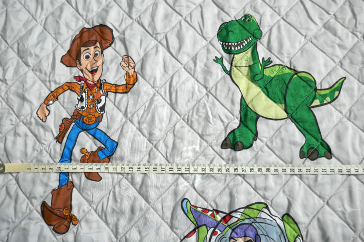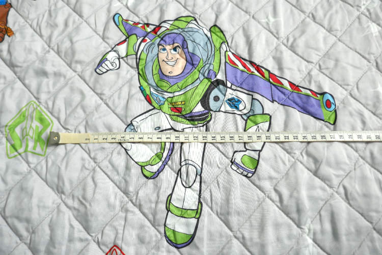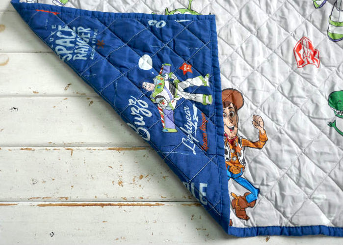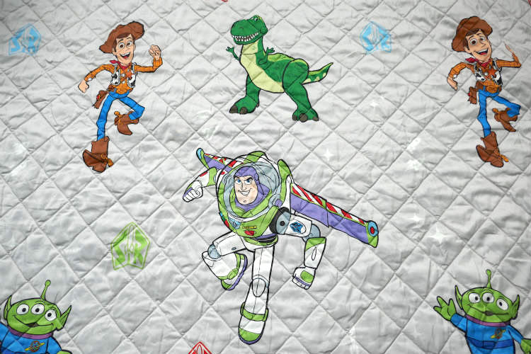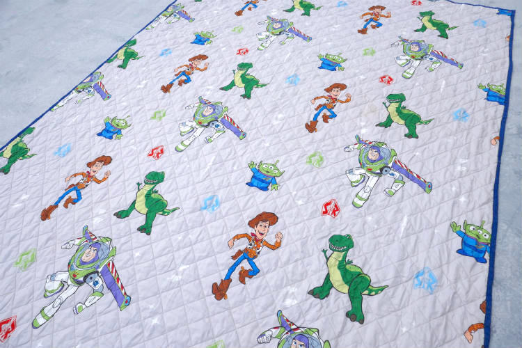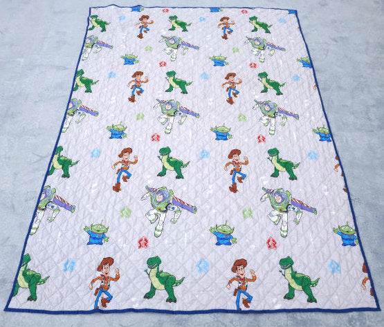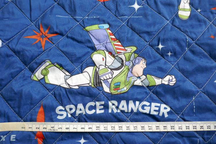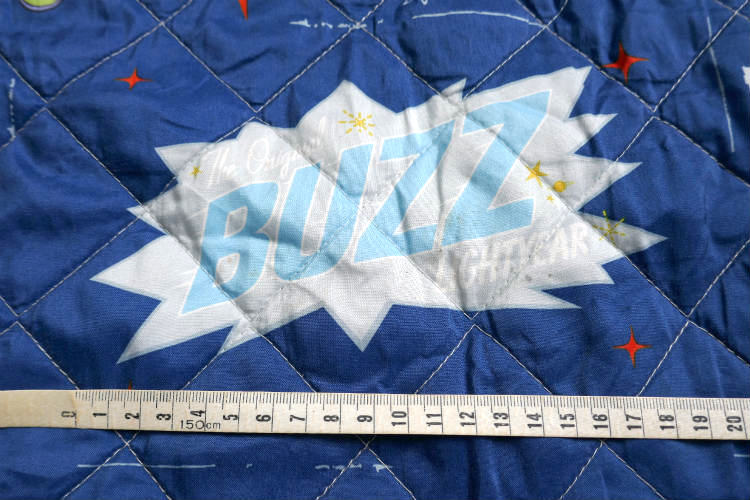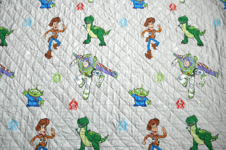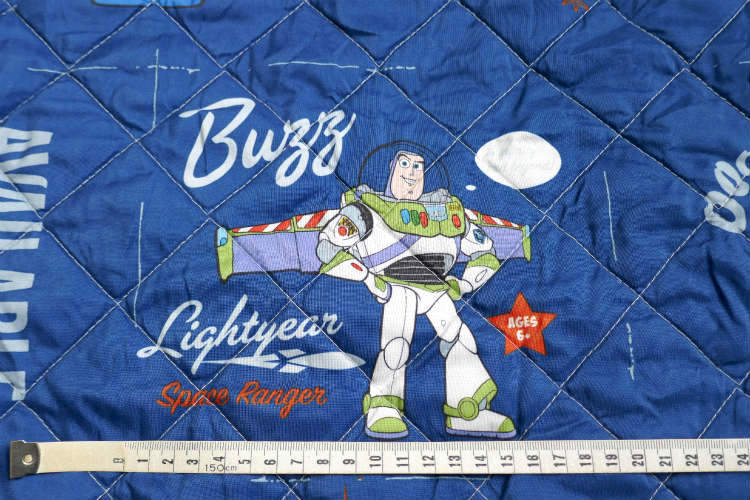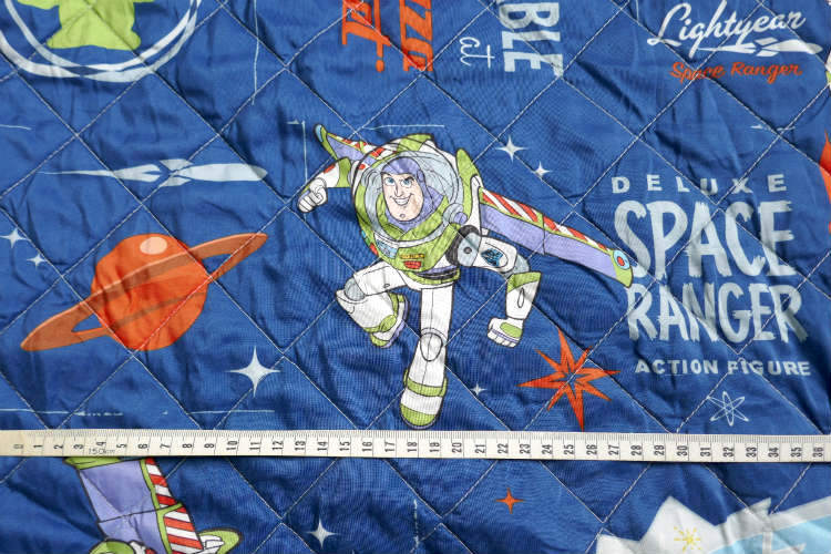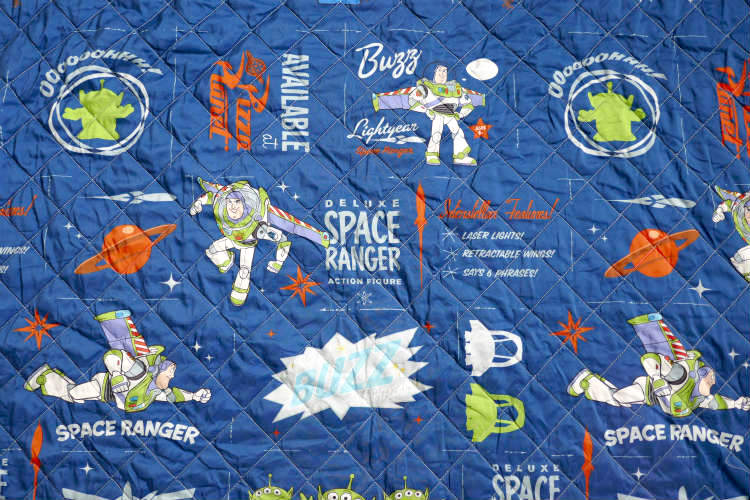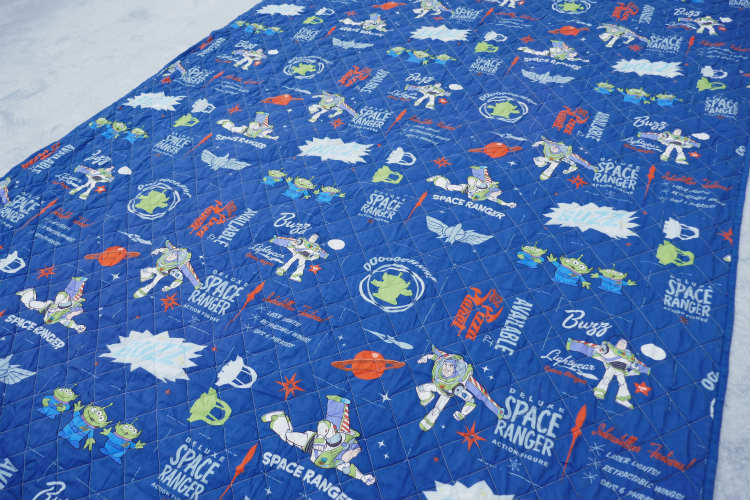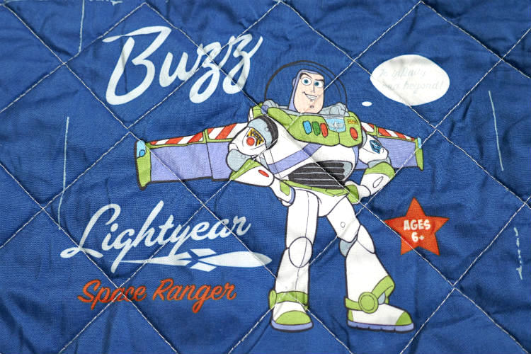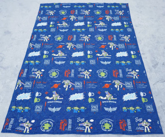 アメリカ西海岸・カリフォルニア州・ロサンゼルス郊外で見つけました・・ディズニーの人気キャラクター『トイストーリー』のキルティング製・両面タイプ・ブランケットです。