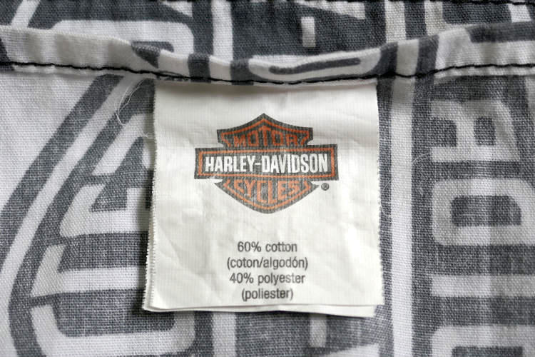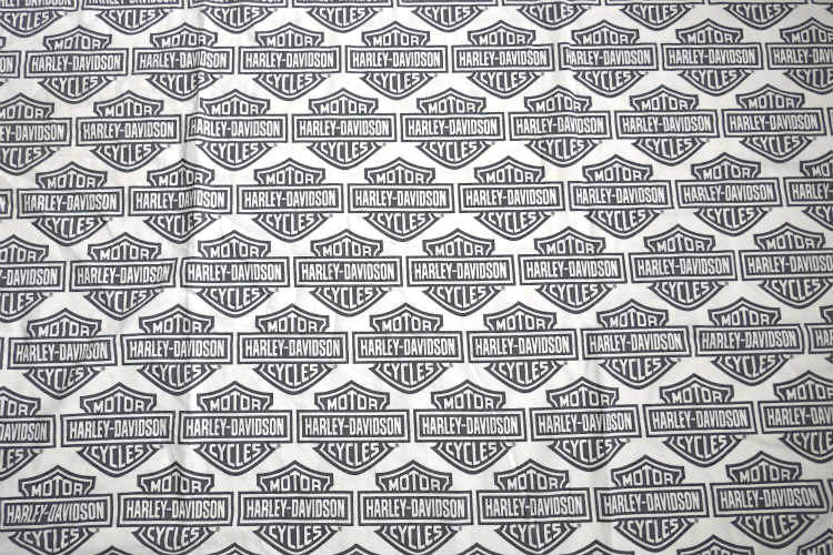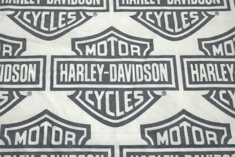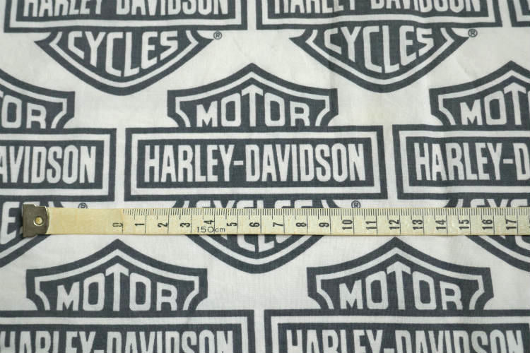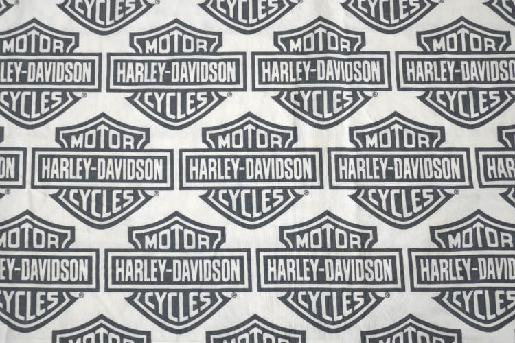 ホワイトベースに、ハーレーダビッドソンのロゴ【HARLEY-DAVIDSON® MOTOR CYCLES】の総柄プリントです。