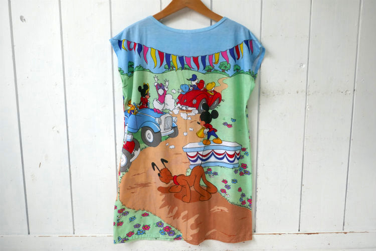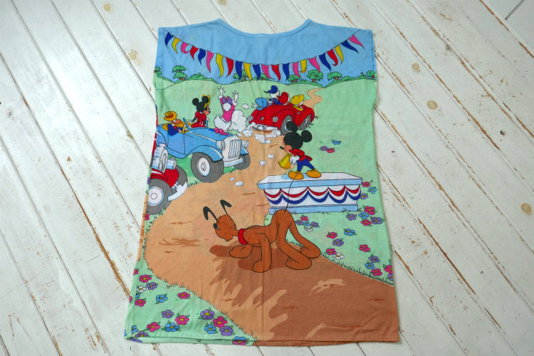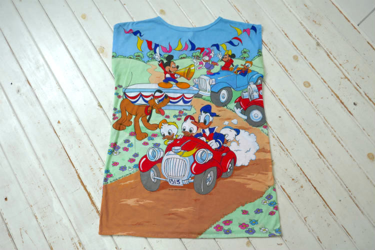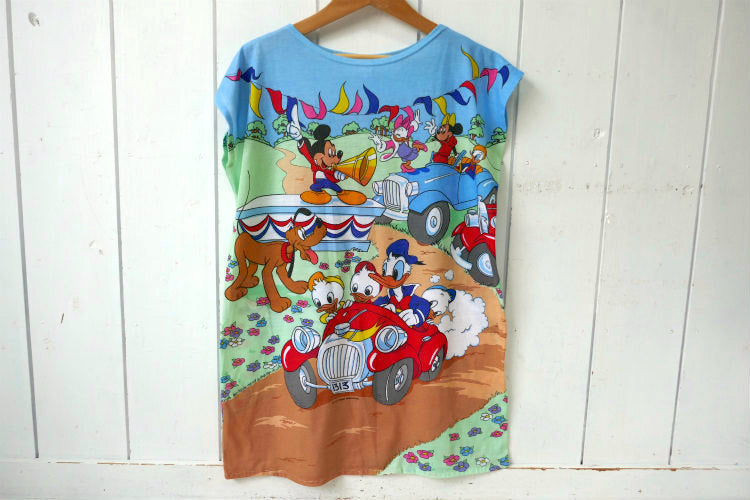 ミッキー&フレンズ ディズニー Radcliffe Lingerie カラフル クラシックカー オールオーバープリント ビンテージ Tシャツ ワンピース 古着 USA製