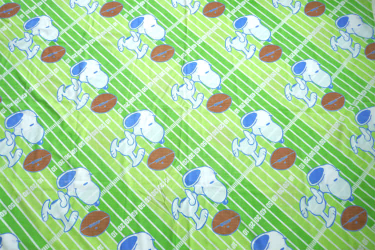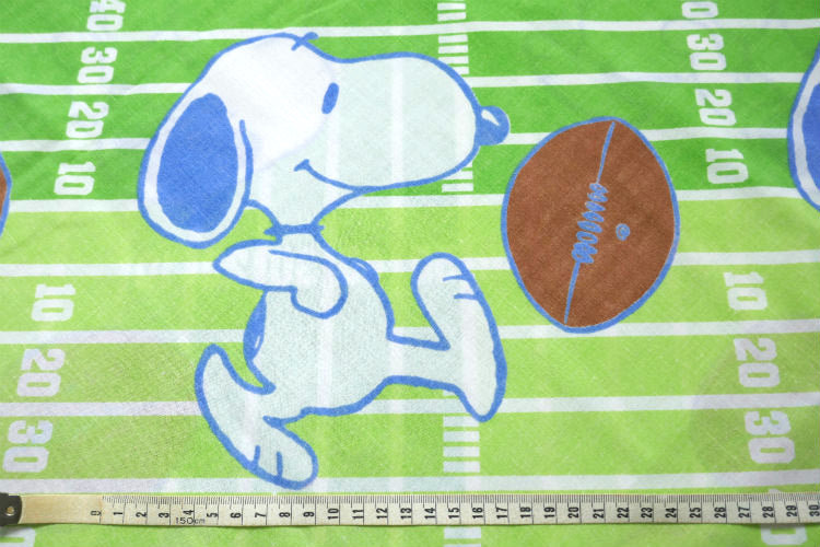 アメリカ西海岸・カリフォルニア州・ロサンゼルスで見つけました・・『スヌーピー(SNOOPY)』のフットボール(アメフト)柄・ヴィンテージ・USEDフラットシーツ(ハーフサイズ)です。