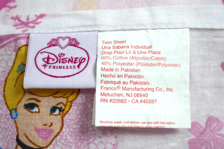 アメリカ西海岸・カリフォルニア州で・ロサンゼルス見つでけました・・『ディズニープリンセス』のUSEDフラットシーツです。(ツインサイズ)